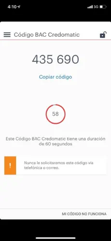 Screenshots de Código BAC Credomatic