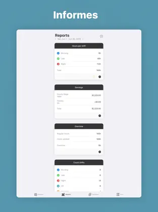 Supershift is a calendar designed for shift workers. Personalize loops with paints and icons. it is also feasible to add notes, breaks, locations and some cycles per day.• REPORTSCreate reports for "Earnings", "Hours per shift", "Overtime" and "Count shifts" (eg vacation days).• method DARKWith the dark system you will be able to view your evening schedule in a more pleasant light.• ROTATIONDefine rotations and apply them up to two years in advance.• the apple company Apple WATCHSee recent and upcoming cycles on your creative company watch of Apple iPhones and iPads and watch for possible complications. The clock app adds countdown timers that mark the time until an event begins or ends. • WIDGETLock screen widgets can be left set to display either a weekly or monthly view.Supershift Pro Features:• EXPORT TO iOS CALENDARExport cycles to iOS calendar (eg Google or iCloud calendar) to distribute your schedule with colleagues contacts and family.• EXPORT TO PDFCreate and share your monthly calendar in updated PDF. The PDF adds title, times, breaks, duration, notes, location and total hours worked.• CLOUD SYNCHRONIZATIONUse cloud sync to keep all your iOS devices in sync. If you convert to a new iPhone or iPad, you are able to employ the s...